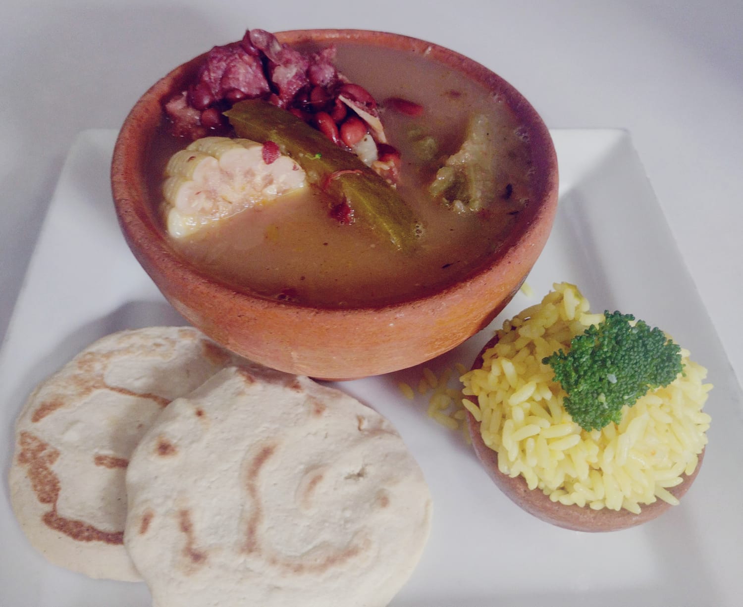Sopa de frijoles rojos con hueso de Res (Incluye una porción de arroz y Cebollita curtida).. $ 3.95